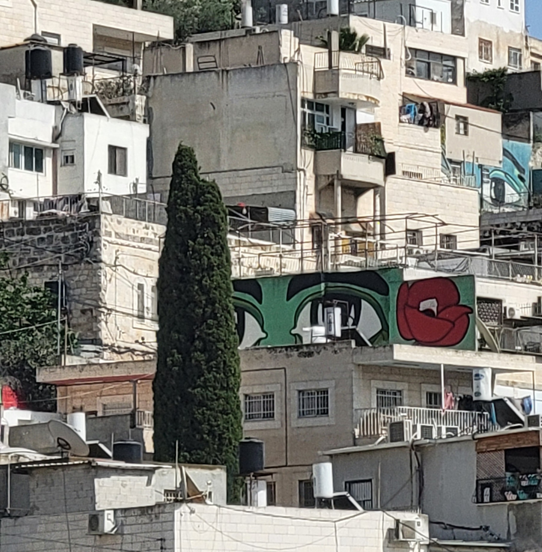 Jawad Siyam, director of the Madaa Creative Center in the neighborhood, expressed the art installation’s purpose simply. “The staring eyes say to people we see them and they should see us too… we want to say that we are here, we love our land and our home.”[1]